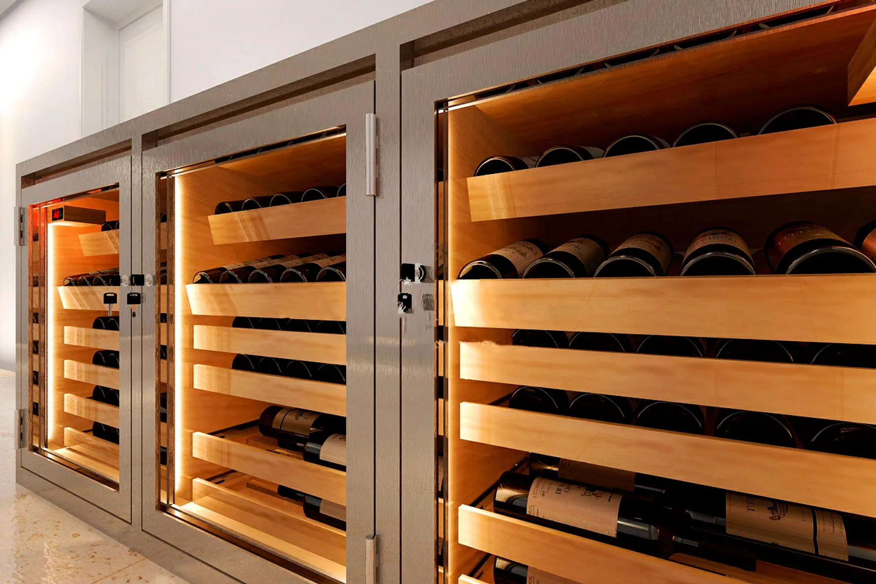 Nossas adegas possuem um design sofisticado, sabemos que cada detalhe faz toda diferença no resultado final! Seus vinhos serão armazenados com responsabilidade, sofisticação e excelência!